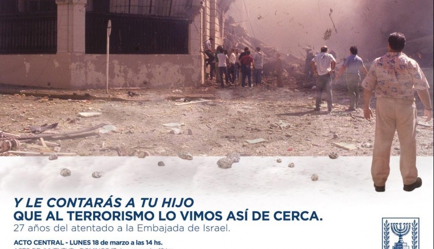 En paralelo con el anuncio del acto en recuerdo del atentado y sus víctimas, la embajada de Israel lanzó una campaña que se llama "Y le contarás a tu hijo que al terrorismo lo vimos así de cerca", que acompaña una foto en la que se ve el edificio en el que funcionaba la embajada en ruinas tras la voladura.