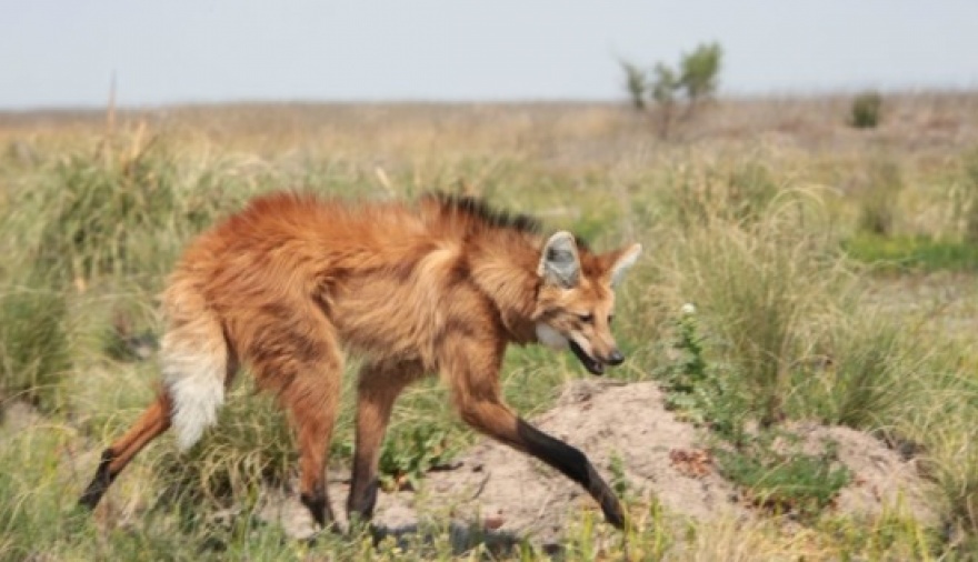 El aguará guazú (Chrysocyon brachyurus) es el más grande de los cánidos sudamericanos. Su pelaje es más bien largo, de color rojo, y en la nuca y la cruz tienen una especie de crin oscura. Es omnívoro y caza de manera oportunista ratas, armadillos, cuises, aves, pequeños vertebrados e insectos, complementando su dieta con frutos silvestres.