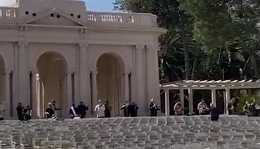 Ante la escucha atenta de los empleados que trabajan en la restauración del emblemático Anfiteatro Martín Fierro, la banda sinfónica tocó varias piezas musicales, de las que también disfrutaron las personas que circulaban por el Paseo del Bosque.