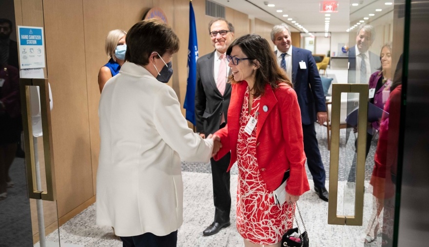 La ministra estuvo acompañada por el embajador argentino, Jorge Argüello; la viceministra de Economía, Karina Angeletti, y el jefe de Cancillería de la Embajada Argentina en Estados Unidos, Adrián Nador.