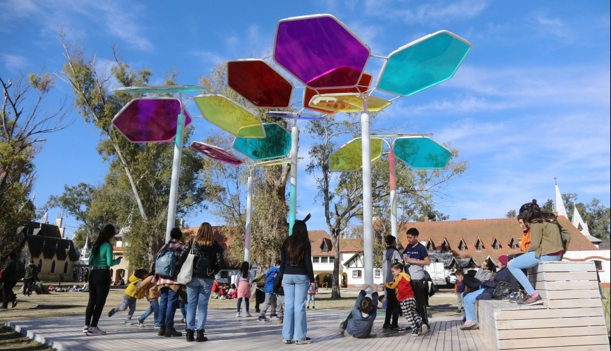 Desde el Municipio explicaron que, con este innovador espacio, los visitantes podrán disfrutar de la experiencia dedicada a la energía solar "Iluminando el día", una intervención escenográfica interactiva con coloridos paneles traslúcidos móviles que le permitirá al público bañar el espacio de colores pintando con la luz del sol.