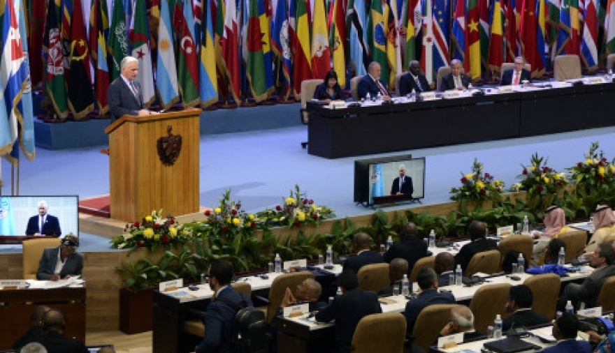 Tras recibir a los jefes de las delegaciones en el Palacio de Convenciones de La Habana, el presidente cubano, Miguel Díaz-Canel, ofreció el discurso de apertura que antecedió a la intervención del secretario general de la Organización de las Naciones Unidas (ONU), António Guterres.