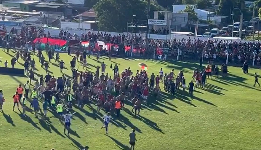Lo cierto es que una vez finalizado el cotejo, los hinchas de Rampla invadieron el campo de juego y provocaron desmanes y corridas hacia los jugadores y cuerpo técnico del elenco adversario, que encabeza el entrenador argentino Cristian Aldirico (ex Tristán Suárez, Chacarita Juniors y Temperley, entre otros clubes).