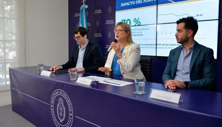 Monteoliva explicó que estos resultados están fuertemente vinculados a la implementación del Plan 90/10, orientado a los territorios con mayor concentración de violencia letal. El 70 % de la reducción de homicidios registrada en todo el país se produjo en las provincias alcanzadas por este plan, y además se logró reducir el área donde se concentra el 90 % de los homicidios: pasó de 193 municipios en 2023 a 180 en 2025, achicando de manera progresiva el núcleo territorial más violento.